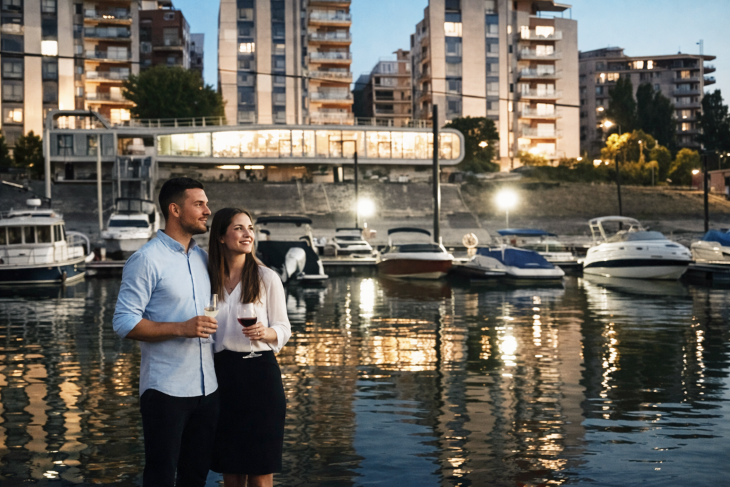The luxury yachts of the Prestige Yacht Resort float on the quiet waters of the Újpest Bay – where the hustle and bustle of city life seems far away in an instant.